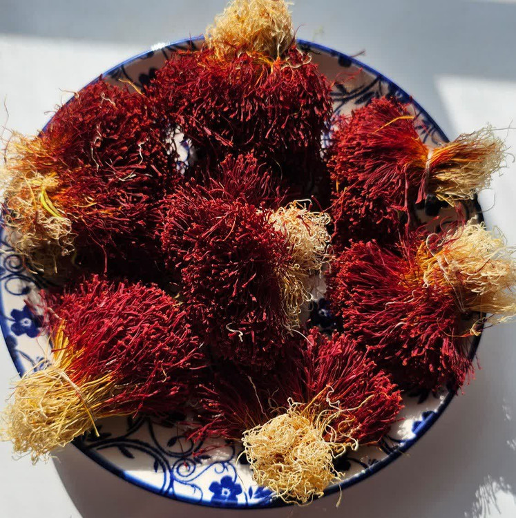زعفران دخترپیچ، رشته کامل زعفران که شامل ریشه و نگین میشود.